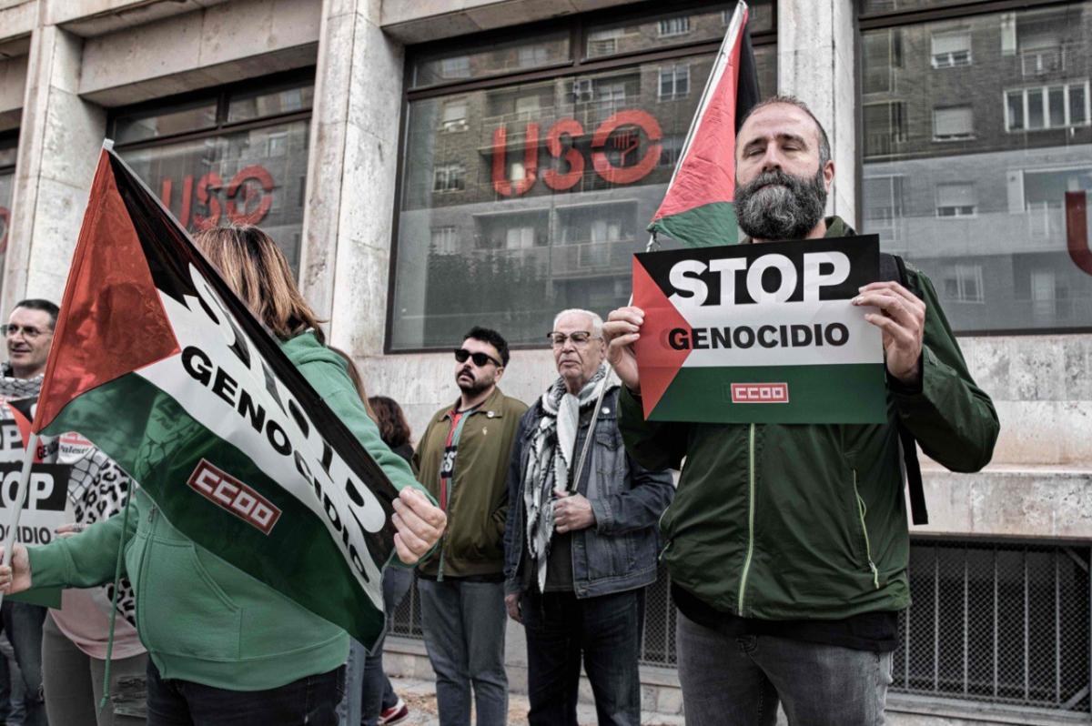En la sede de CCOO de La Rioja tuvo lugar una concentración en repulsa por la situación actual en Palestina, en la que se procedió a la lectura de un manifiesto que denunciaba el genocidio y las graves violaciones de derechos humanos que sufre la población civil. El acto concluyó con un emotivo minuto de silencio, en recuerdo de las víctimas y como símbolo de respeto y esperanza por un futuro de paz.
